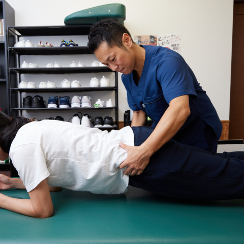 施術の前にお身体の状態を把握するために、関節の動きの確認などいたします。